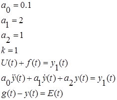 2. Выбрать регулятор таким образом, чтобы система обладала свойством астатизма по отношению к постоянному задающему g(t) и возмущающему f(t) воздействию.