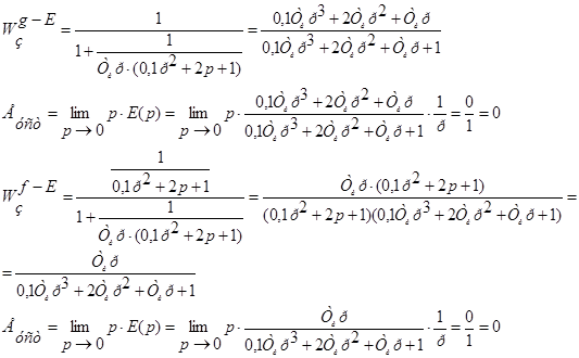 Т.к. величина установившейся ошибки не равна нулю, то система не обладает астатизмом,, а следовательно считать ошибку по каналу f-E нет необходимости.
