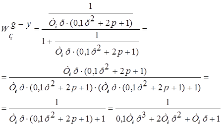 Найдем передаточную функцию замкнутой системы по каналу g-y и затем выделим ее характеристическое уравнение.