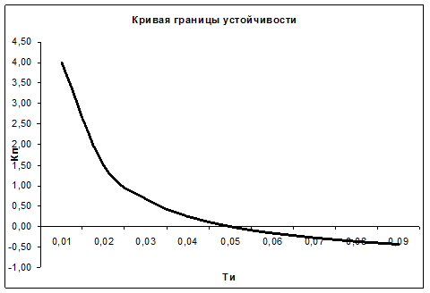 3. Найти область значений постоянной времени регулятора для И – закона управления, обеспечивающих устойчивость системы.