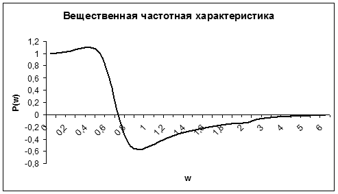 8. Для найденного в пункте 7 значения постоянной времени регулятора построить с помощью ЭВМ вещественную частотную характеристику P(ω), приняв входным воздействием g(t) и входной координатой E(t)/