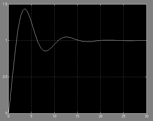 Таким образом для получения в системе установившейся ошибке равной 0,06 необходимо задать параметру постоянной времени значение 0,03.