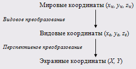 Процедура преобразования отвечает за перевод мировых координат в видовые, а потом из видовых в экранные.