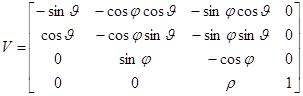где V - матрица видового преобразования размерами 4х4.