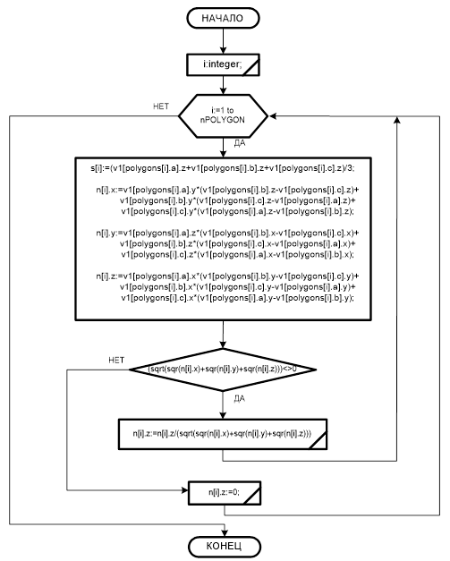 Его координаты сохраняются в структуре соответствующей грани. Кроме того, при каждом повороте сцены векторы нормали нужно пересчитывать.
