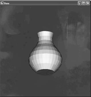 Ваза в данной работе состоит из 30 меридианов и 10 параллелей. Сначала вычисляются мировые координаты вершин стенок вазы. В данной модели их 300. После этого рассчитываются номера вершин полигонов для стенок вазы. Аналогичным образом вычисляются мировые координаты вершины дна вазы и номера полигонов дна вазы.