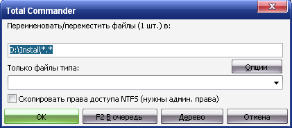 Ця команда дозволяє перейменовувати та переміщувати файли та папки з вихідної папки і може бути застосовна для переміщення їх до інших папок та дисків. Задається команда для цієї операції за допомогою клавіші F6.