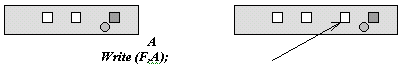 Использование процедуры записи возможно, когда файл открыт для записи, т.е. головка записи/чтения совмещена с признаком конца файла (новые элементы помещаются в конец файла).