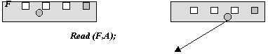 где F - имя файла, определенное в программе;