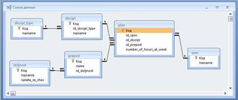 FROM doljnost INNER JOIN (prepod INNER JOIN plan ON [prepod].[Код]=[plan].[id_prepod]) ON [doljnost].[Код]=[prepod].[id_doljnost]