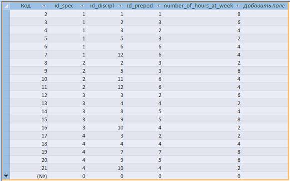 Таким образом, имеем нормализованную реляционную базу данных, в которой очень легко производить изменения. Так, например, если некий преподаватель уволился и вместо него пришел другой преподаватель и взял на себя все те же самые его часы, то достаточно (если нет необходимости в сохранении записей уволенного преподавателя) изменить имя ушедшего преподавателя на имя нового. Изменение названия специальности (например, если «Госуправление» переименуют в «Муниципальное управление») не отразится на связях в таблице, изменится лишь название специальности в таблице SPEC. Изменение наименования дисциплины, либо изменение ее вида опять же не приводит к существенным изменениям. Централизованное повышение почасовой ставки сразу всем сотрудникам, занимающим одну должность, производится через таблицу DOLJNOST. Используя таблицу PLAN мы можем очень быстро (и не затрагивая содержимого остальных таблиц) изменить учебный план, добавить новые часы, удалить исключенные из плана занятия, сменить преподавателя, изменить число часов.