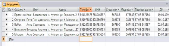 1. Сотрудники (рис. 1) – в нее вносятся данные о сотрудниках