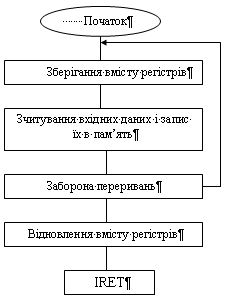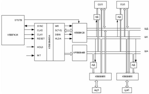 · організація обміну з АЦП - через переривання з RST6 використовуючи режим 1 роботи контролера КР580ВВ55;