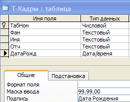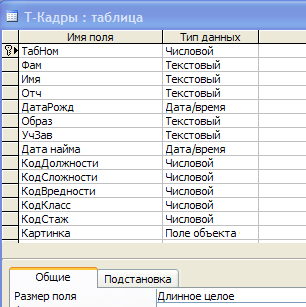 Рассмотрим создание однотабличных форм на основе таблицы Т-Кадры (Рис.19, Рис.20):