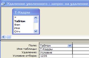 · По табельному номеру данные сотрудника вызываются из таблицы Т-Кадры и добавляются в таблицу Т-АрхивУволенных;
