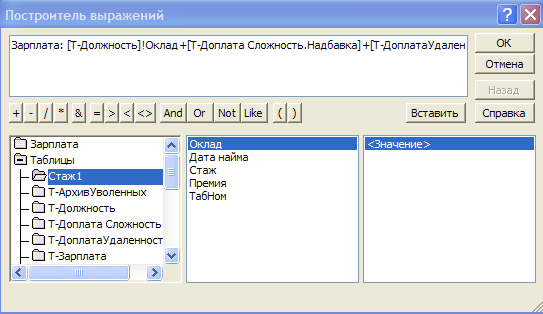 Кнопка Расчет зарплаты производит формирование таблицы Стаж, а затем, складывая все надбавки, выдает конечную зарплату работников.