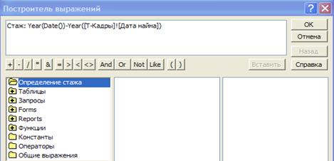 Стаж вычисляется путем определения количества лет между датой найма и текущей датой (Рис.17).