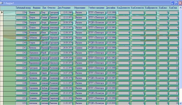Рис.26. Таблица Т-Кадры, открытая с помощью макроса