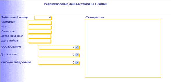 Создадим форму, с помощью которой можно было бы редактировать данные в таблице Т-Кадры (Рис. 22).