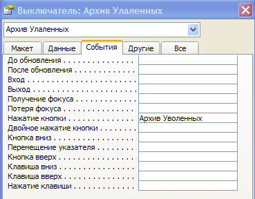 Рис.28. Свойства кнопки Архив Удаленных