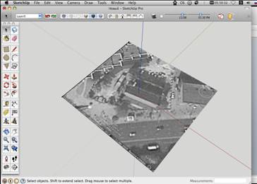 6. Переключившись на SketchUp, постройте модель поверх снимка Google Планета Земля, импортированного в шаге 4.