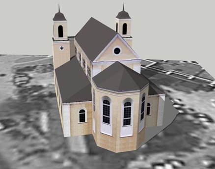 2) Экспорт с целью обогащения моделями существующих зданий приложение Google Earth, участие в коллективном проекте. Модель появляется в базе данных Google Earth, находится в открытом доступе и может быть скачана любым пользователем программы. Объём строится по определённым правилам, цель – уложить максимальное количество данных в как можно более простую, «лёгкую» форму.