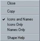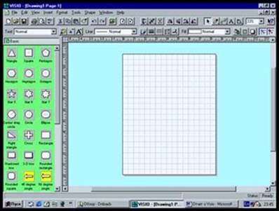 Теперь начнем более подробно рассматривать данную программу, все ее функции, кнопки, возможности и т.д. Окно для редактирования изображений занимает самое большое пространство на экране. Оно представляет собой визуально лист в клеточку, в котором производятся все операции по редактированию. Окно для редактирования находится как бы поверх специально фона, на котором нельзя рисовать и производить какие либо действия. Само окно имеет заданные границы для редактирования. Для более точного построения вокруг окна редактирования имеется линейка, она позволяет очень точно расположить объекты на плоскости и провести расчеты. Размеры окна для редактирования могут быть разными по размеру и чтобы комфортно переходить при больших масштабах рисунка от одной части к другой, как и всех стандартных программах под операционную систему Windows имеются полосы прокрутки. Немного левее окна редактирования, располагается окно для работы с трафаретами (если это окно было выбрано по умолчанию при начальной загрузке или вызвано при помощи кнопки на панели инструментов), здесь располагаются готовые блок схемы, фигуры, стрелки, изображения и т.д. Для того чтобы исходное изображение в трафарете появилось в окне для редактирования нужно, мышкой перейти в окно трафарета и выбрать нужный нам объект. После того как объект выбран, установив курсор на нем, мы нажимая левую клавишу мыши и держа ее переносим это изображение из одного окна в другое. Так же как и в окне для редактирования здесь присутствуют полосы прокрутки. Так же можно открыть сразу несколько трафаретов, тогда рядом с кнопкой названия данного трафарета появятся и другие. Если нажать правой клавишей мыши на кнопке названия данного трафарет появится подменю, в котором производятся дополнительные команды. Команда Activate означает что в данный момент это окно активно, Float – превращает меню трафарета в отдельное окно, которое можно или свернуть или закрыть (благодаря этой функции можно заметно увеличить размеры для окна редактирования), Switch Sides – позволяет перенести меню из левой стороны в правую, Close – закрывает меню трафарета. Помимо того что можно щелкнуть мышкой на кнопке денного трафарета, так же можно щелкнуть и на самом объекте в трафарете. В этом случае тоже появляется вспомогательное меню. Команда Close закрывает заданный трафарет, Copy – копирует данный фрагмент, Icons and Names – показывает значки и имена к ним, Icons Only – показывает только иконки, Names Only – показывает только имена иконок, Shape Help – помощь по данному фрагменту. Так же можно самому создавать панели для трафаретов и заносить туда понравившиеся фигуры. В процессе работы надписи могут иметь полупрозрачный цвет, вместо черного (цвета по умолчанию для активных приложений). Если надпись написана полупрозрачным цветом, то в данном случае это действие нельзя применить или оно уже сделано. Например, нельзя сделать активным меню если оно уже активное.