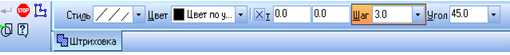 2. На появившейся понели настроек я выбрал стиль и цвет штриховки (а также можно задать шаг и угол) .