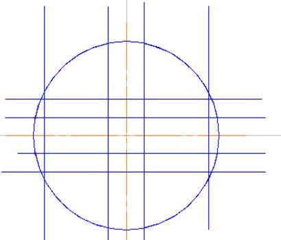 Я начертил вспомагательные линии, относительно которых будут проводиться дальнейшие построения.