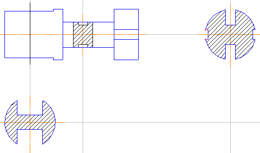 Сечения я вычерчивал на всё тех же осевых линиях, естественно создав предварительно слои Вынесенные сечения и Наложенное сечение (тип линий – сплошная, вес линий – 1 мм.).