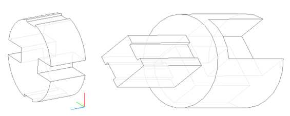 С другой стороны моя деталь так же имеет пазы, поэтому применяя те же операции, что и в предыдущем случае, вырезаю из нее лишние части…