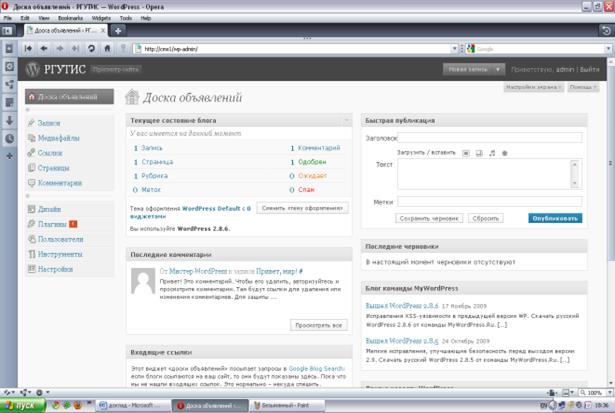 2.Администрирование сайта. Выход в конструктор в котором и осуществляется ведение блога.