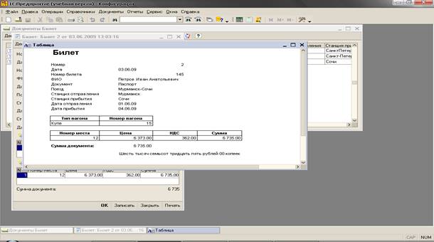 | ПРЕДСТАВЛЕНИЕ(Билет.Поезд),
