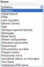 Для увеличения функциональности учебного курса добавлены блоки. Блок Календарь не только выводит даты и дни недели, но и позволяет вести общий для курса и личный органайзер каждому участнику обучающего курса. Блок Наступающие события отобразит, например, начало и окончание сроков сдачи практических занятий и тестов. Для вывода, например, трех лучших и трех худших результатов тестирования добавим блок Результаты теста. Таких блоков в обучающем курсе может быть несколько, на каждый тест свой блок результатов.