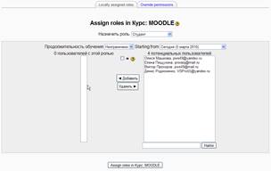 Назначить пользователей для курса может администратор системы или преподаватель, щелкнув по ссылке Назначить роли в блоке Управление: