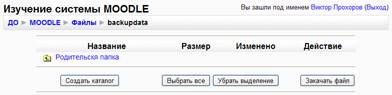 Регулярно выполняйте резервное копирование учебных курсов из блока Управление. Создав полную резервную копию своего электронного курса, вы можете всегда восстановить его в случае непредвиденных сбоев на сервере или перенести свой курс с одного сервера на другой, воспользовавшись ссылкой Восстановить в блоке Управление. Для получения отчета (на экран и в виде файла) об активности пользователей на вашем курсе воспользуйтесь ссылкой Отчеты. Таблицу с оценками на все виды работ и всех учащихся можно увидеть на экране и сохранить в файл для дальнейшей обработки, щелкнув по ссылке Оценки.