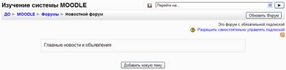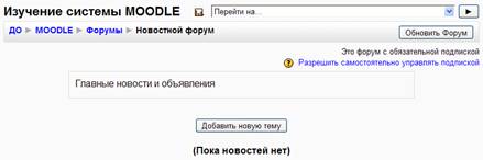 Новостной форум, в котором отображаются новости всего курса. Новости добавляет преподаватель курса, учащиеся могут только просматривать;