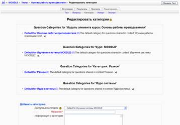 2. Исследование возможностей преподавателя в СДО MOODLE
