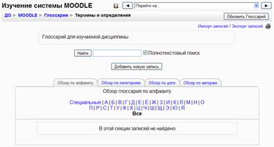 Дипломная работа: Исследование возможностей преподавателя в системе дистанционного обучения Moodle