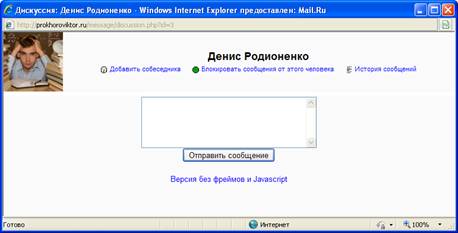 Щелкнув на ссылке Войти в чат, откроется дополнительное окно обозревателя: