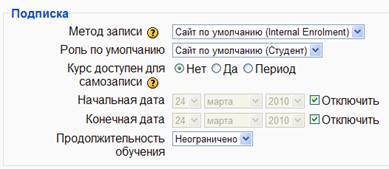 Рисунок 2.125 – Окно Редактирования настроек курса. Подписка