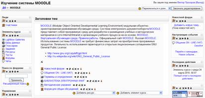Рисунок 2.1 – Окно системы дистанционного обучения MOOLLE