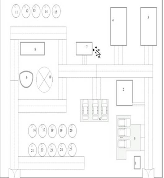 Объект представляет собой комплекс зданий. Территорию объекта условно можно разделить на 2 зоны: промышленную зону, и безопасную. Промышленна зона состоит из: здание лабаратории,производственные мощности и резервуары. Безопасная зона включает в себя 2 складских помещения и офисное здание. Площадь объекта составляет 50000 м2 (250 х 200м). Доступ на объект имеют только сотрудники предприятия, имеющие специальные пропуска. Доступ осуществляется круглосуточно, без выходных. План-схемы объектов изображены на рисунках 1 и 2