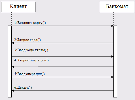 Предназначена для отображения временных зависимостей, возникающих в процессе общения между объектами. На диаграмме последовательности изображаются только те объекты, которые непосредственно участвуют во взаимодействии и не показываются возможные статические ассоциации с другими объектами. Для диаграммы ключевым моментом является именно динамика взаимодействия объектов во времени. При этом диаграмма последовательности имеет как бы два измерения. Одно – слева направо в виде вертикальных линий, каждая из которых изображает линию жизни отдельного объекта, участвующего во взаимодействии. Графически каждый объект изображается прямоугольником и располагается в верхней части своей линии жизни. Внутри прямоугольника записываются имя объекта и имя класса, разделенные двоеточием.