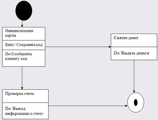 Каждая диаграмма состояний в UML описывает все возможные состояния одного экземпляра определенного класса и возможные последовательности его переходов из одного состояния в другое, то есть моделирует все изменения состояний объекта как его реакцию на внешние воздействия.