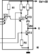 6. Даний елемент реалізує функцію "І-НІ в додатній логіці і функцію "АБО-НІ у від'ємній логіці, причому на транзисторах VТ2–VТ4 реалізовано складний інвентор, який здійснює операцію "НІ".