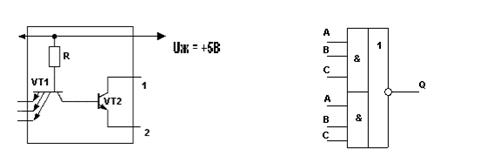 Для збільшення логічних можливостей ТТЛ-схем до виводів від точок 1 і 2 інвертора під'єднується логічний розширювач (рис.2,а); при цьому реалізується логічна функція "І-АБО-НI”: