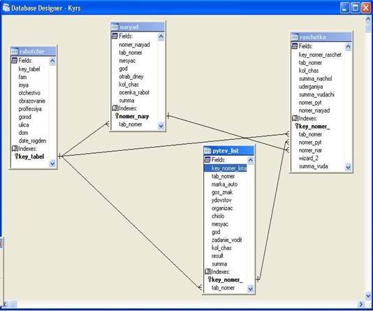 На рис. 12 изображена база данных, где показаны взаимосвязи таблиц. Данная база данных состоит из четырех таблиц.