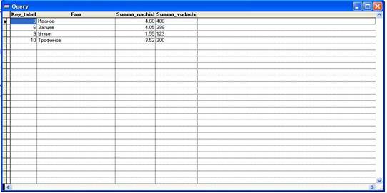 SELECT key_tabel, fam, summa_nachisl, summa_vudachi FROM rabotchie, raschetka WHERE ((rabotchie.key_tabel=raschetka.tab_nomer) AND (summa_vudachi<'500'))