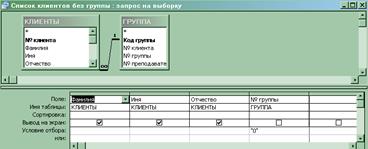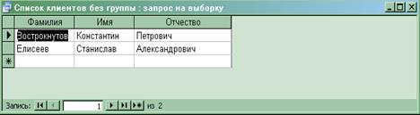 Выводится список клиентов не занесённых ни в одну из существующих групп.